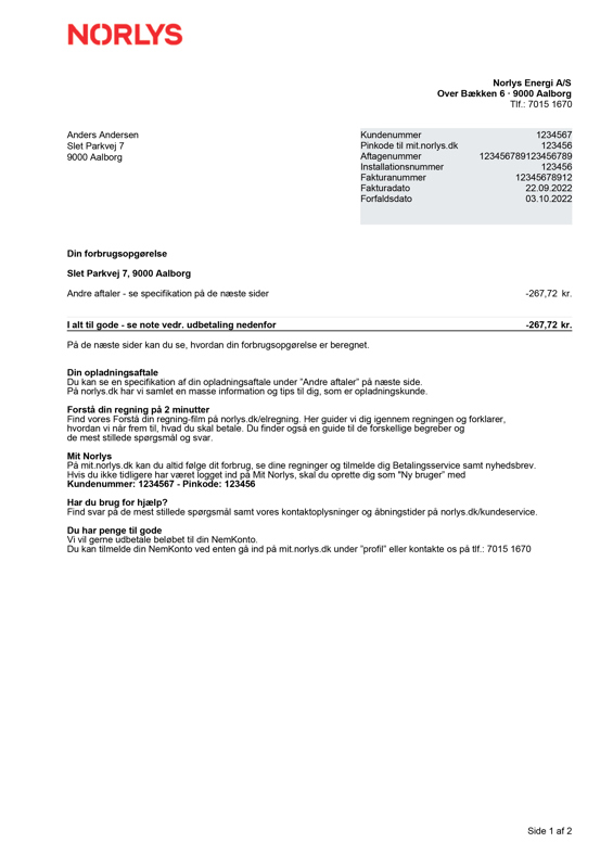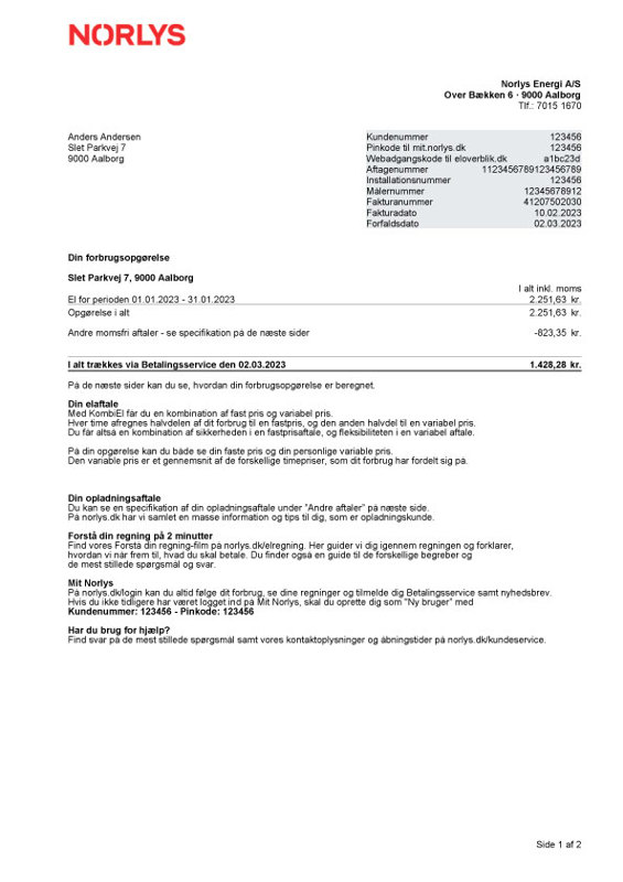Har du ikke Norlys som elleverandør, kan du se et eksempel på en forbrugsopgørelse her.