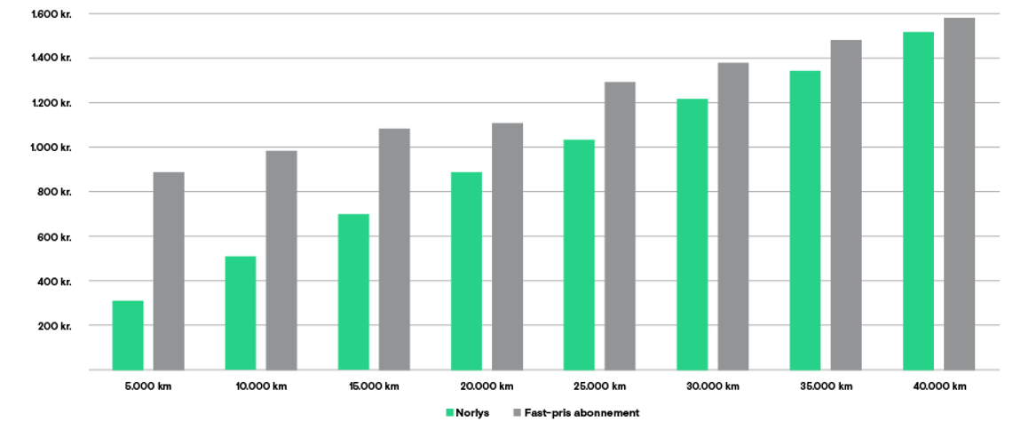 Norlys er billigst ved kørsel op til 40.000 km. om året